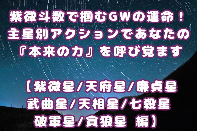 紫微斗数で掴むGWの運命!主星別アクションであなたの『本来の力』を呼び覚ます 【紫微星/天府星/廉貞星/武曲星/天相星/七殺星/破軍星/貪狼星 編】