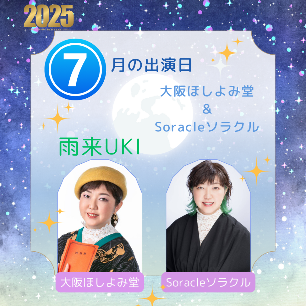 2025年7月 雨来の出演日《占い&スピリチュアル鑑定》