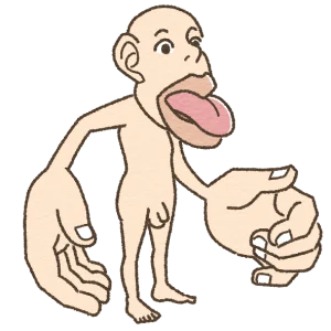 彼の姿は手や指・唇や舌が異常に大きく、
