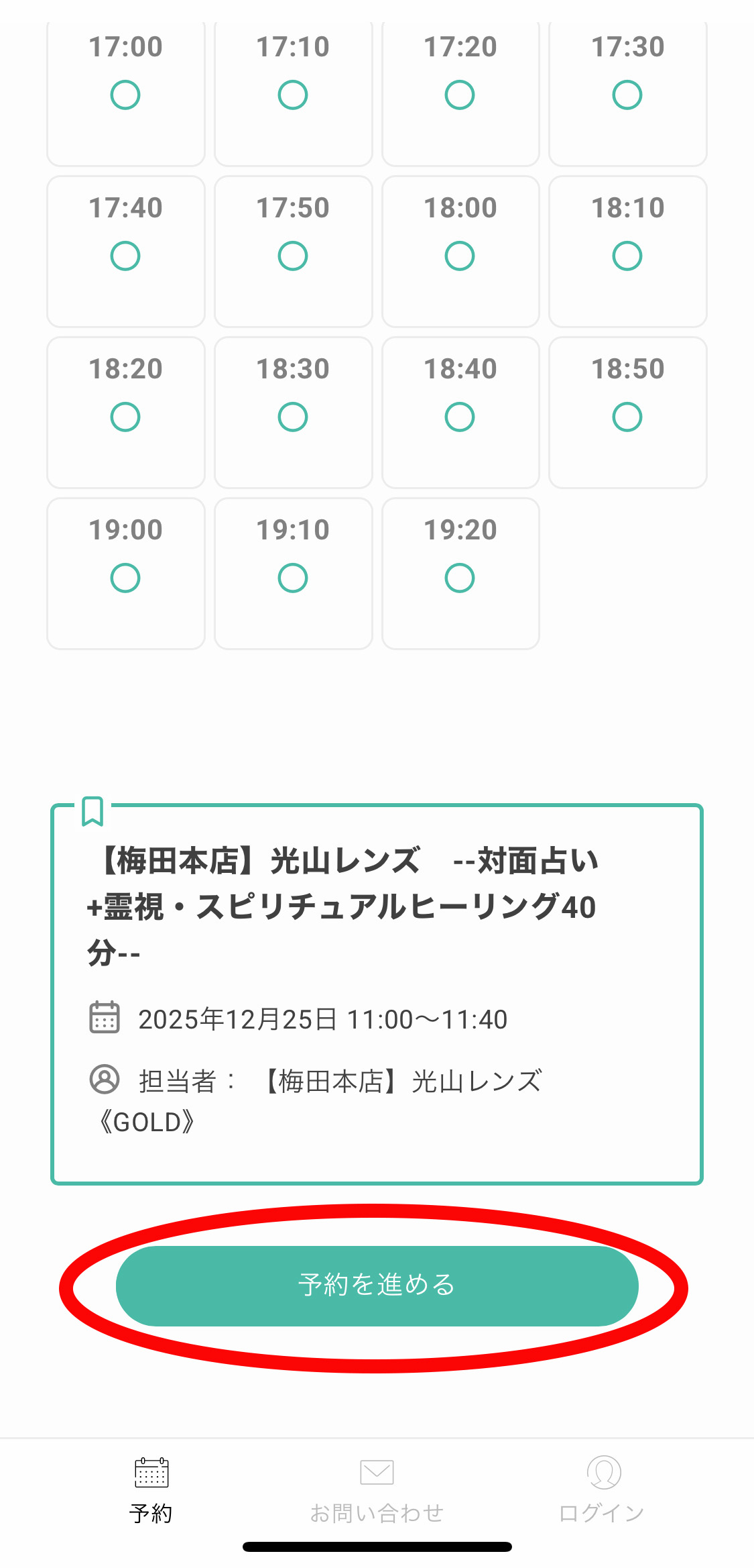 ⑩ 予約内容を確認し「予約を進める」をクリック
