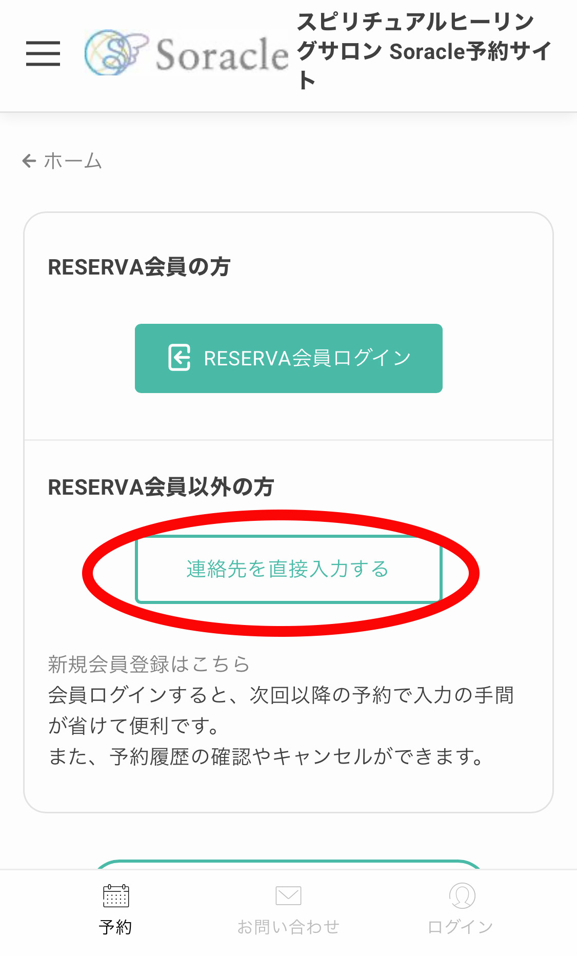 ※RESERVA会員の方は「RESERVA会員ログイン」より進んでください。