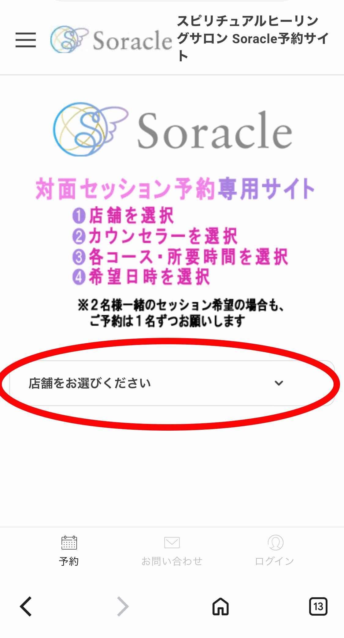 ② 「店舗をお選びください」をクリック