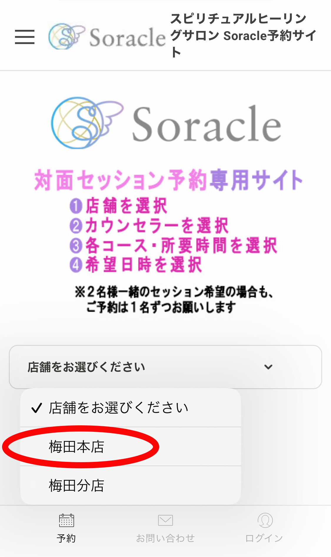 ご予約方法(WEB予約の手順)