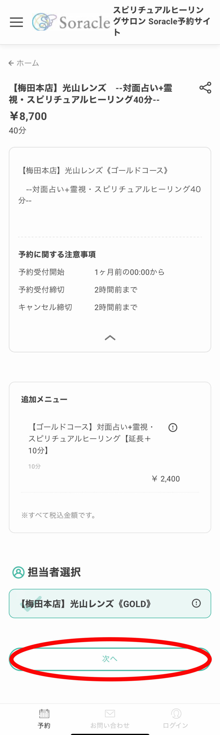 WEB予約に進むことができ、